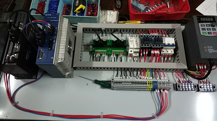 調直切斷機系統用到了電子凸輪運動功能,主流系統控制方案為觸摸屏、運動控制器、送料伺服、飛剪伺服。   科威智能伺服集伺服驅動、PLC控制、運動控制于一體,正好適用于調直切斷機系統。科威智能伺服調直切斷機系統方案為觸摸屏、飛剪智能伺服、送料智能伺服。
